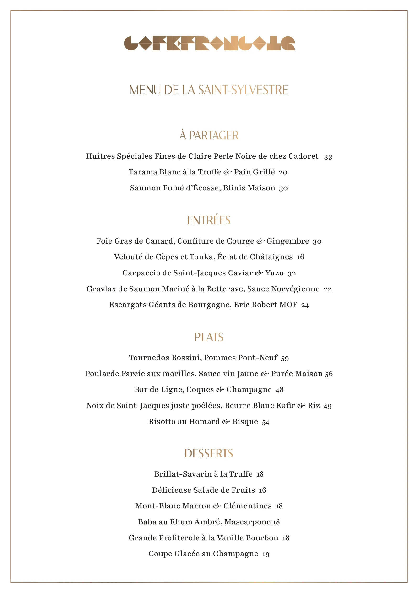 Discover our menu for the evening